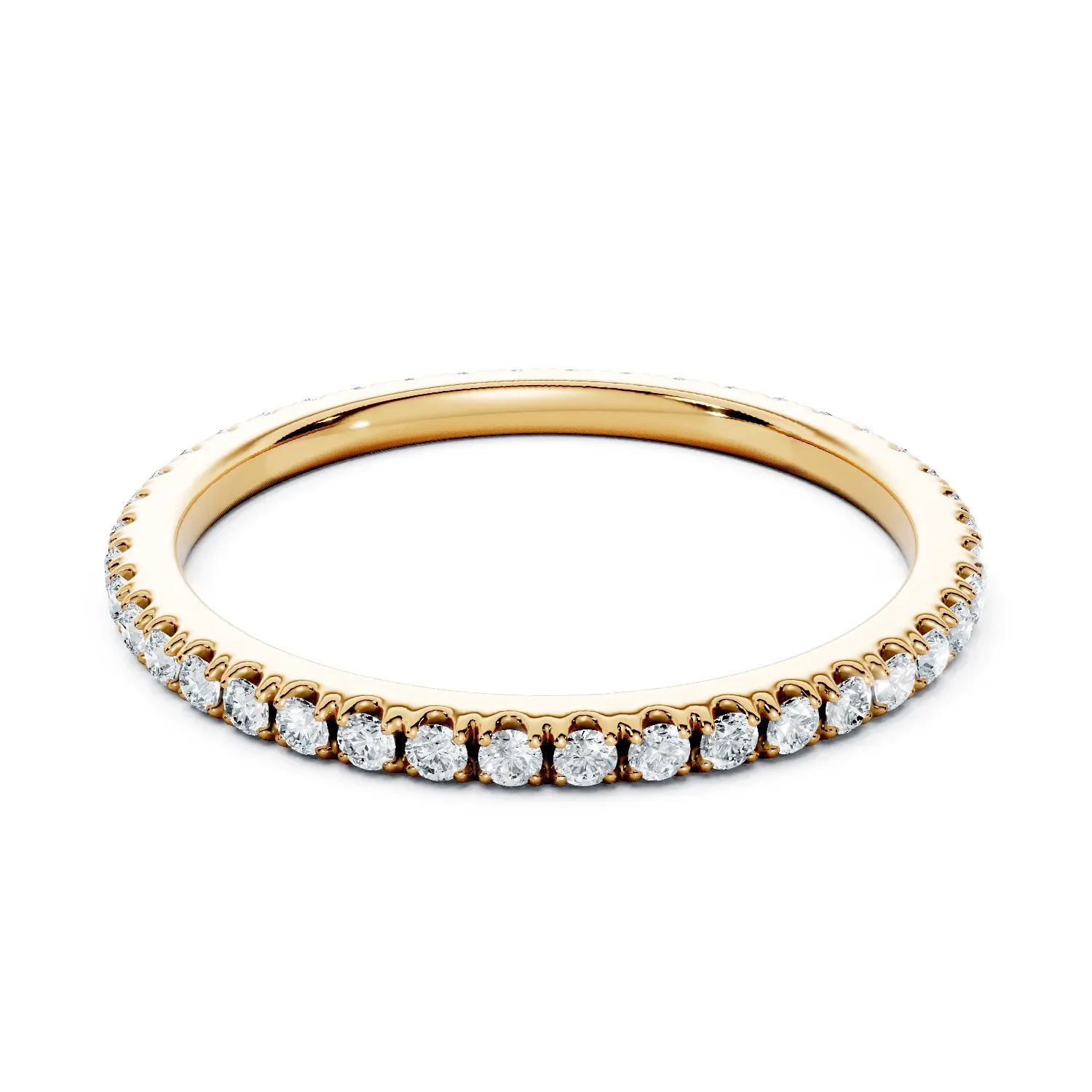 This timeless stacking wedding band features U pavé-set round diamonds covering full the band for brilliant sparkle. Crafted with a secure bezel base and comfort fit, it’s ideal for stacking with engagement rings or wearing alone. A sleek and elegant choice available in 1.6mm, 2.0mm, and 2.3mm widths. Perfect as a wedding ring, anniversary band, or everyday fine jewelry essential.