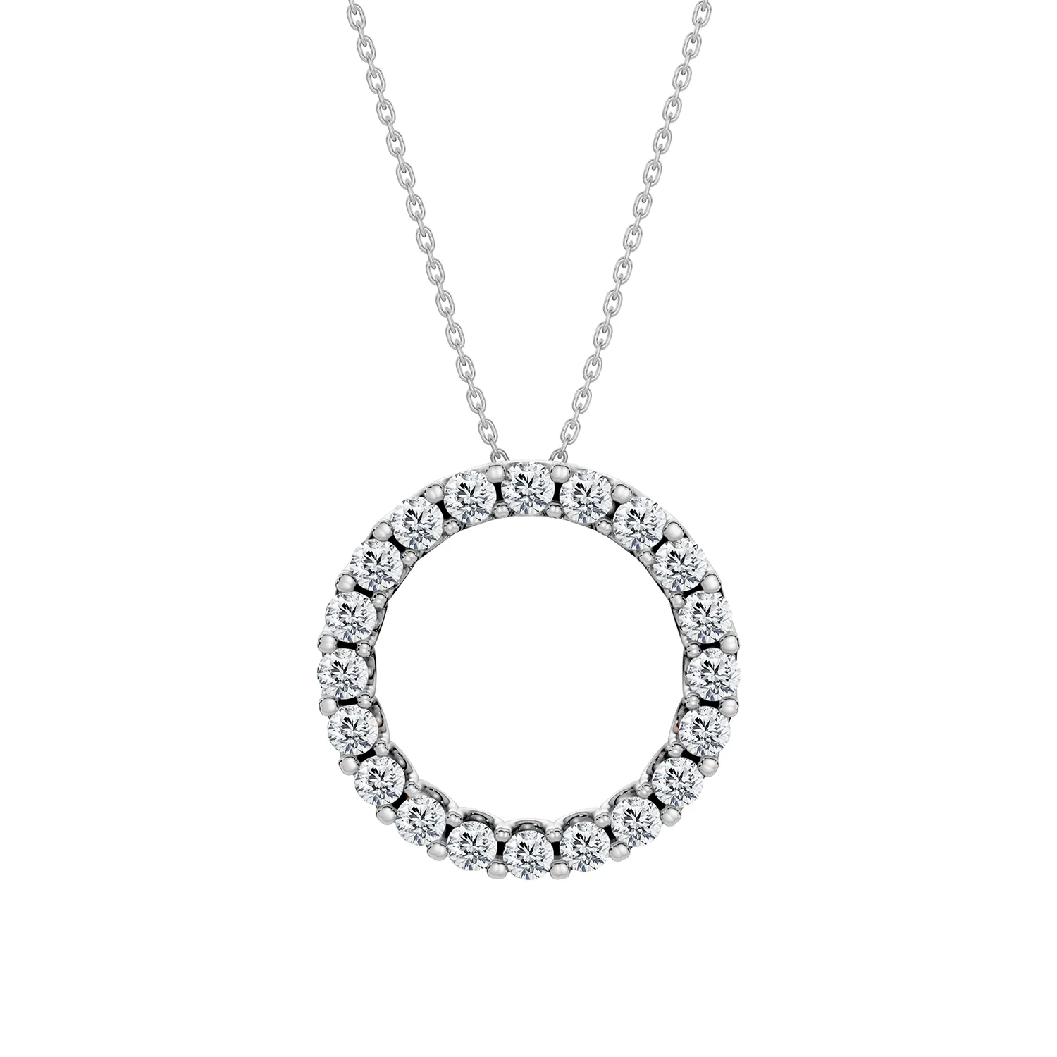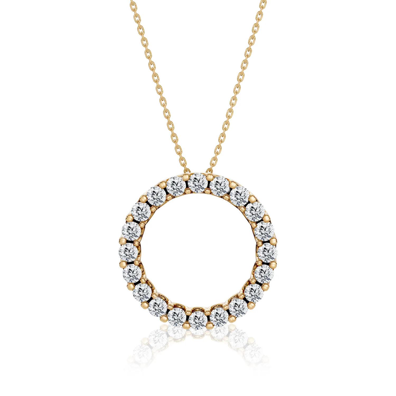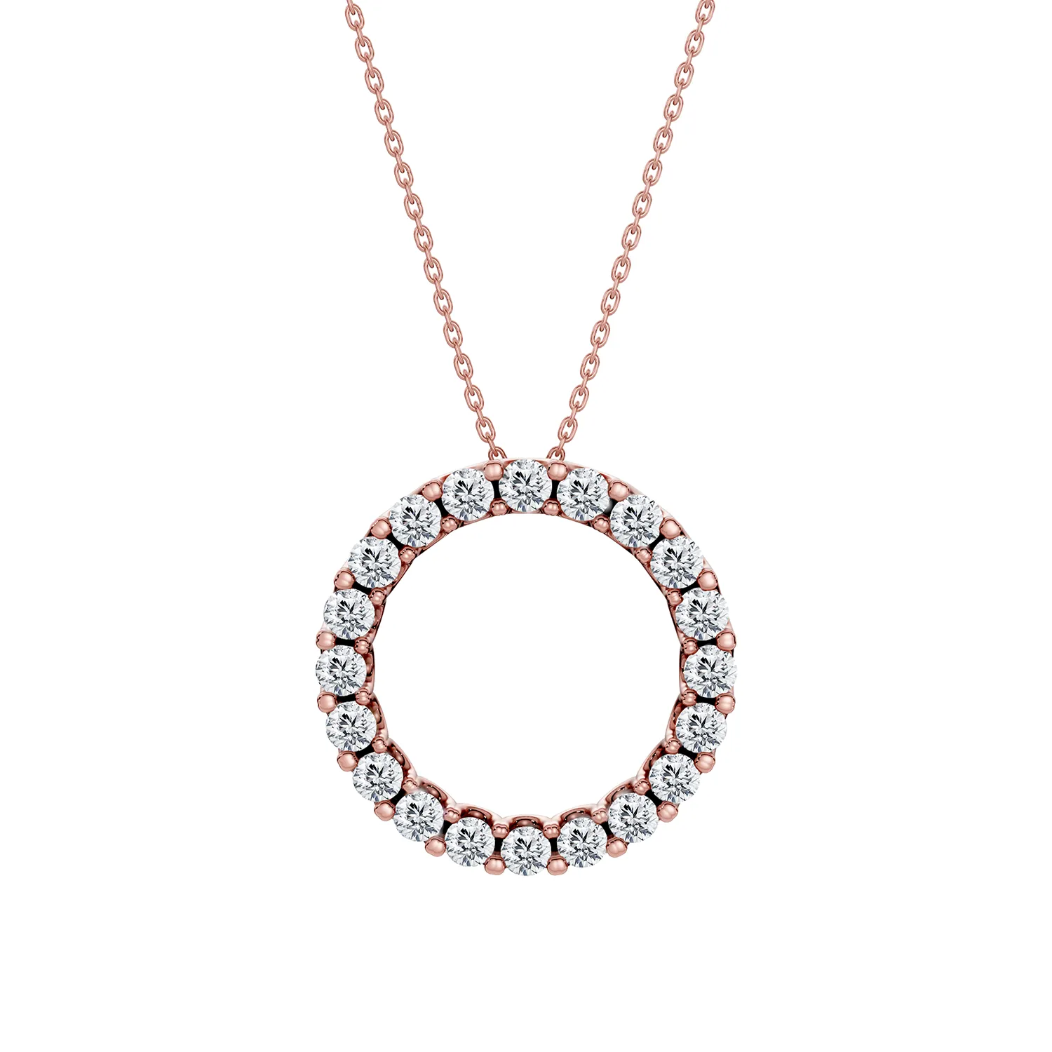 Timeless and refined, this Diamond Circle Pendant Necklace features a continuous ring of shared-prong diamonds, creating a sleek halo of brilliance. From the side, the elegant U-profile metalwork enhances light and dimension. Minimalist yet striking, this pendant is perfect for layering or wearing alone as a symbol of eternity and grace.