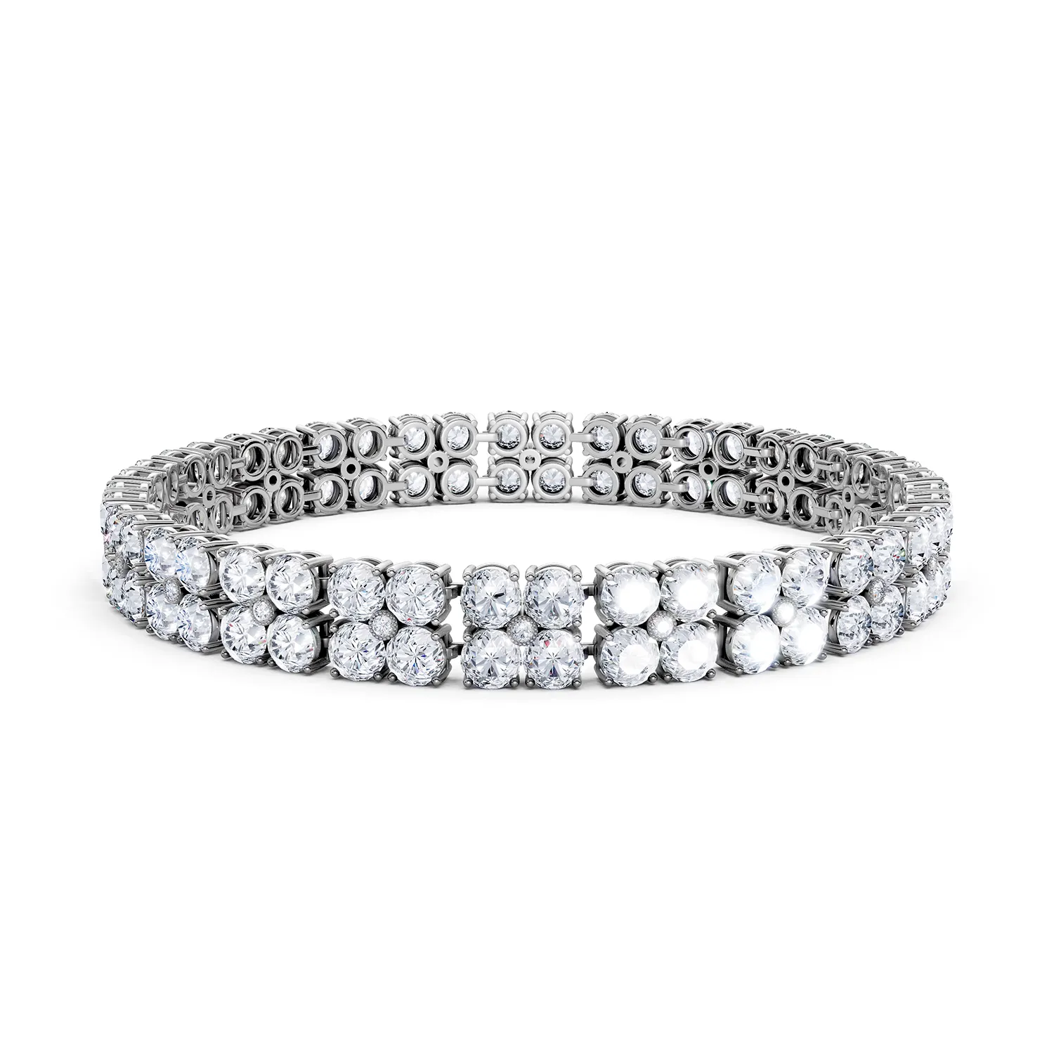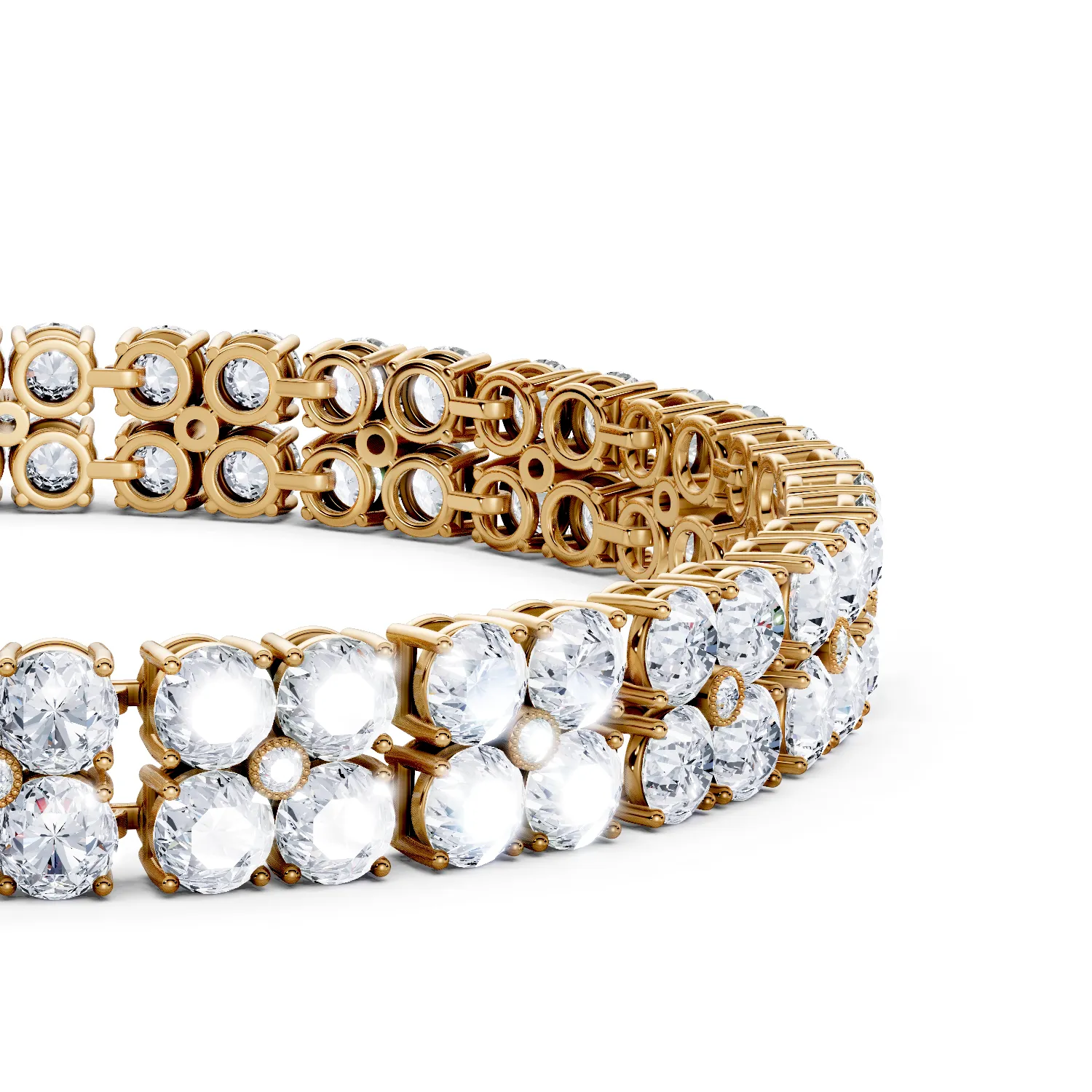 This refined tennis bracelet features five round diamonds per unit, with a delicate beaded bezel-set diamond at the center surrounded by four prong-set stones. The three-row adaptive basket ensures a secure, flexible fit, while the alternating floral-inspired units create a soft, elegant rhythm. Crafted with precision, this bracelet brings timeless sparkle and graceful structure to both everyday looks and formal occasions.
